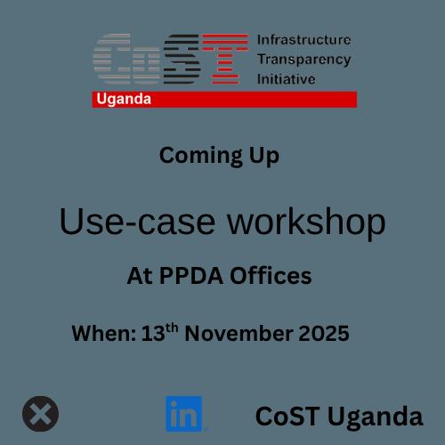 In partnership with Africa freedom of information centre and Public Procurement and Disposal of Public Assets Authority, we are set for a use case workshop on the 13th November 2025 at PPDA offices to Review our mapping report using the new CoST Infrastructure Data Standard (OC4IDS).